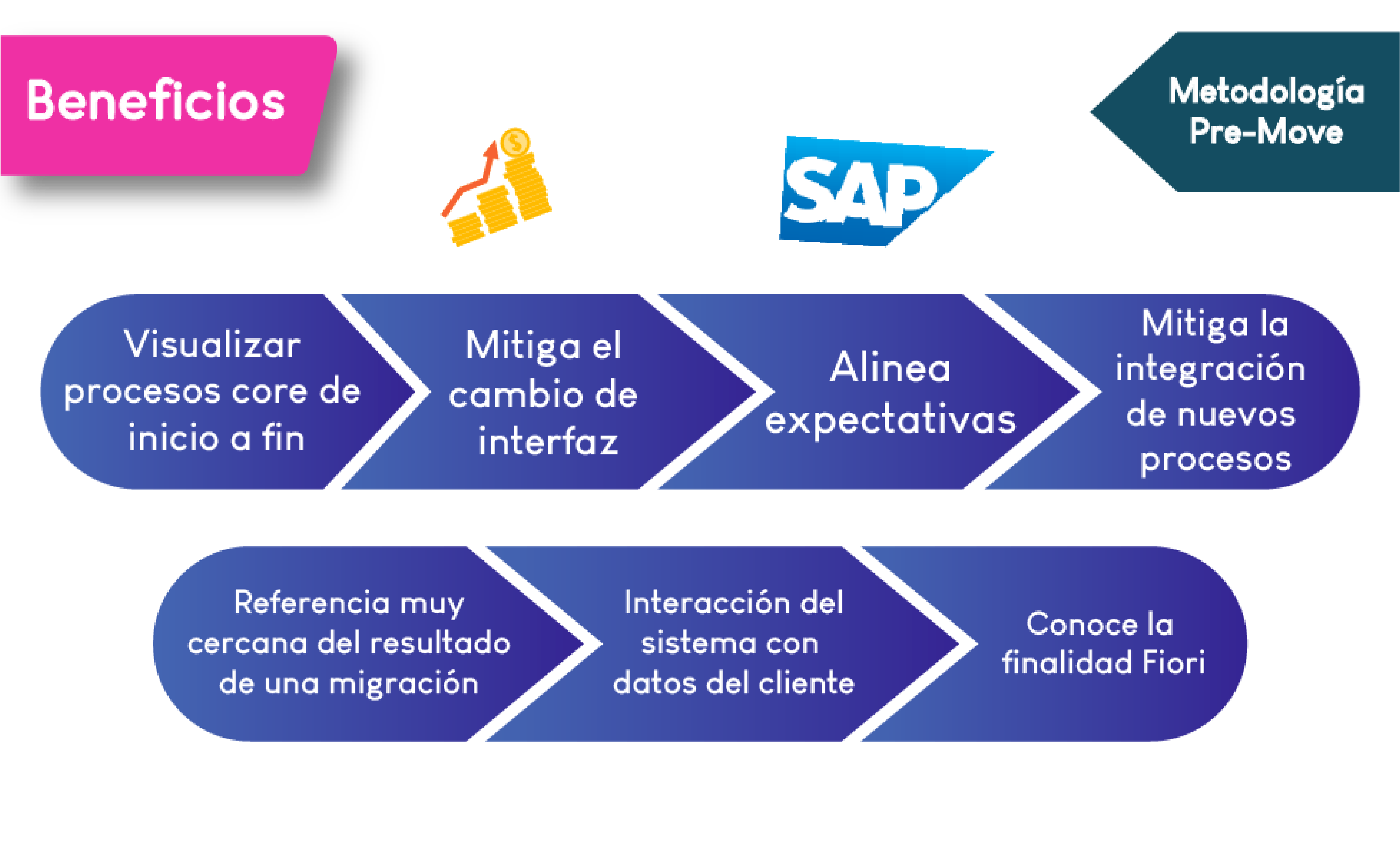 Sabemos que implementar un Sistema de Gestión Empresarial en tu empresa significa una gran decisión. Por eso en GHIMPROVE creamos la metodología PRE-MOVE, que te permitirá conocer y experimentar SAP S/4HANA antes de implementarlo en tu negocio.